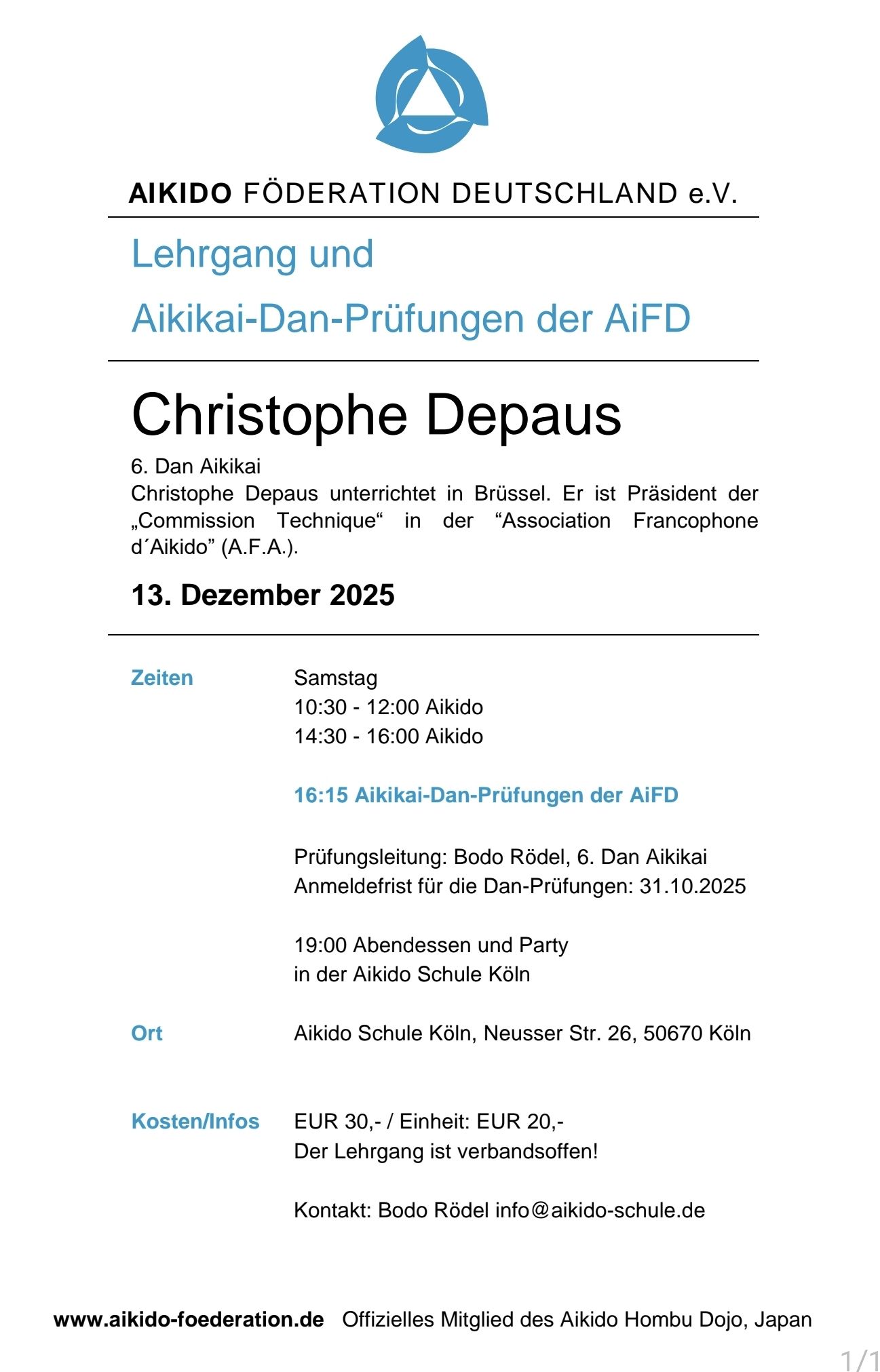 13.12.2025 Lehrgang und Aikikai-Dan-Prüfungen in der Aikido Schule Köln